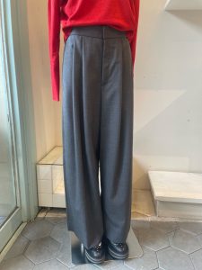 パンツはATONの中でも定番で人気のツータックワイドパンツ。