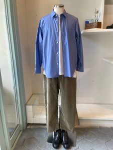 ATONの上質なシャツとSTUDIO NICHOLSONの立体的なパンツが織りなすコーディネートは、