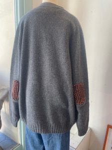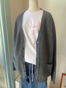 BLESSでは定番のジェットランド素材のニットカーディガン。全面はシンプル。