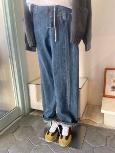 パンツは定番のサイドにジップが4本付いている人気のデニムです。