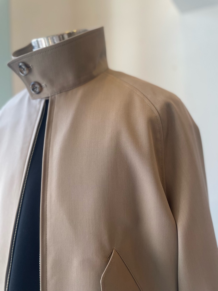 英国の伝統的なハリントンジャケットをベースに、THE RERACSならではのミニマルでモダンな視点で再構築した一着。