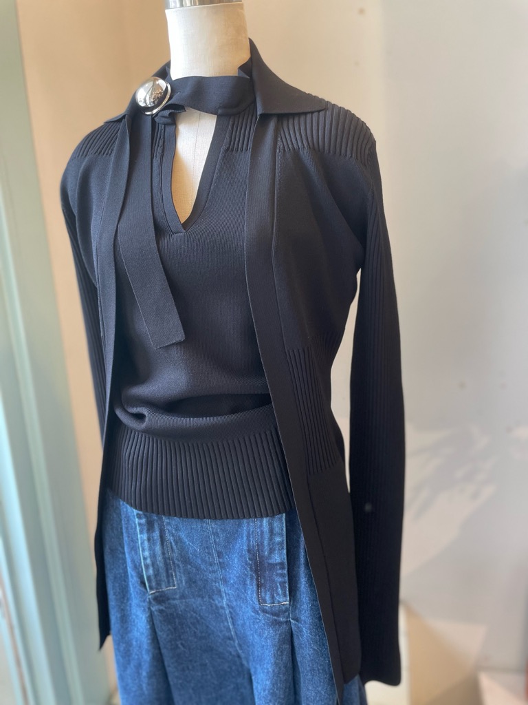 あえてまえで留めないデザインでタイトなシルエットが、身体を綺麗に細く見せてくれます。