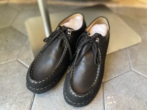 シューズには、重厚感と柔らかな履き心地が魅力のPETROSOLAUM のチロリアンシューズ。