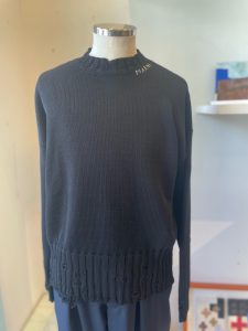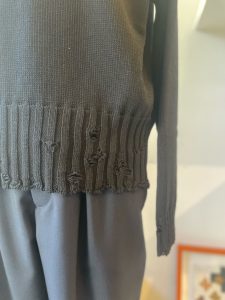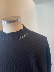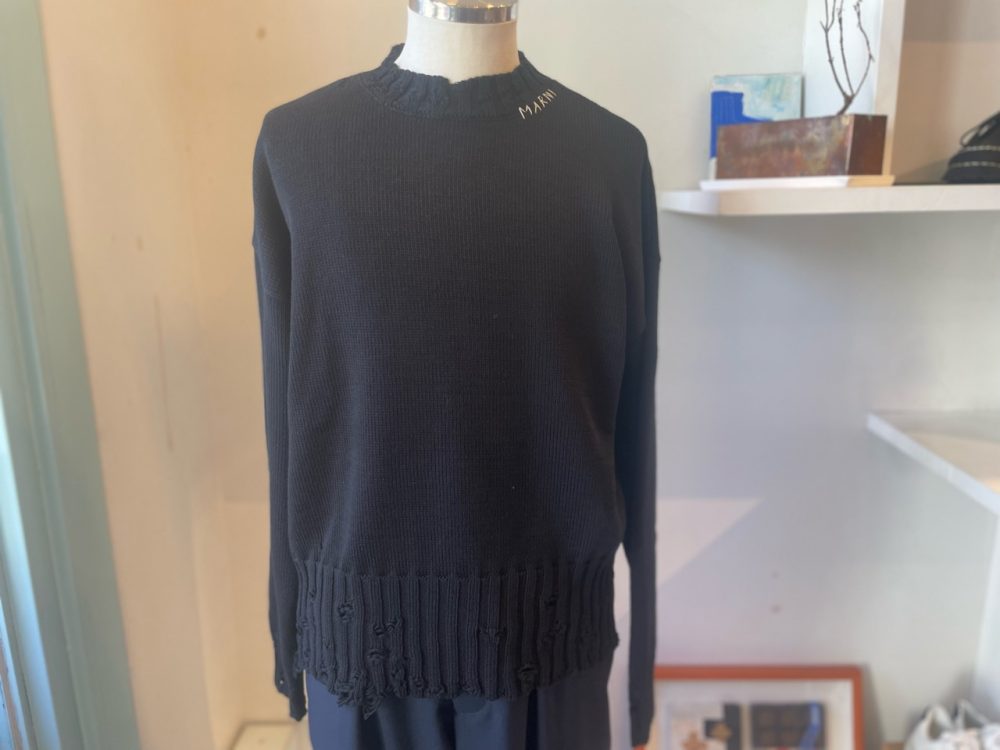 首元と裾に施されたダメージ加工が印象的で、MARNIらしい遊び心が感じられる一枚です。
