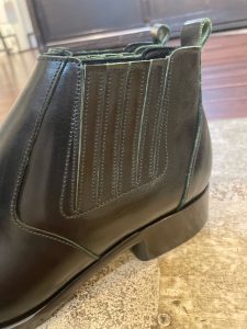 普通ならゴムが見えてカジュアルになりがちなんですが、ゴムの上にアッパーのコードヴァンバットが縫い付けられ、ゴムが隠されてるんです。