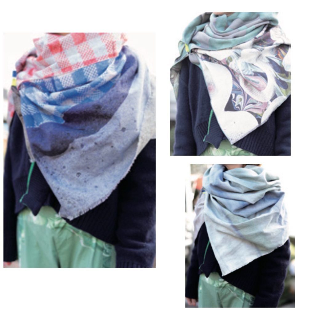 パンツと同じ素材のストール。巻いたり羽織ったりと楽しめます。